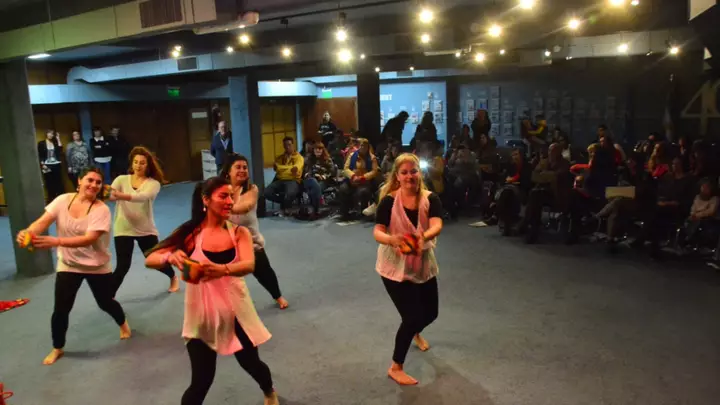 Las bailarinas, son estudiosas de las danzas africanas, forman parte de un taller y han participado en distintas movidas callejeras. Fueron cabeza de las multitudinaria columna en el histórico Encuentro Nacional de Mujeres realizado el año pasado en Trelew. En el cierre también estuvo «La Caldera», Cooperativa de Mujeres Trabajadoras de la Cocina, con sus exquisitos bocadillos.