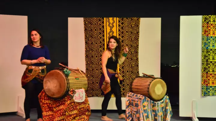 Al son de dos auténticos tambores africanos y sonidos, las bailarinas hicieron una introducción con una canción de un ritmo africano que se llama «Kuku», que según dijo Corradini lo sienten «muy nuestro» porque es en relación a la pesca, al encuentro de mujeres en la costa con una danza que generalmente es circular y donde se celebran las buenas cosechas del mar.