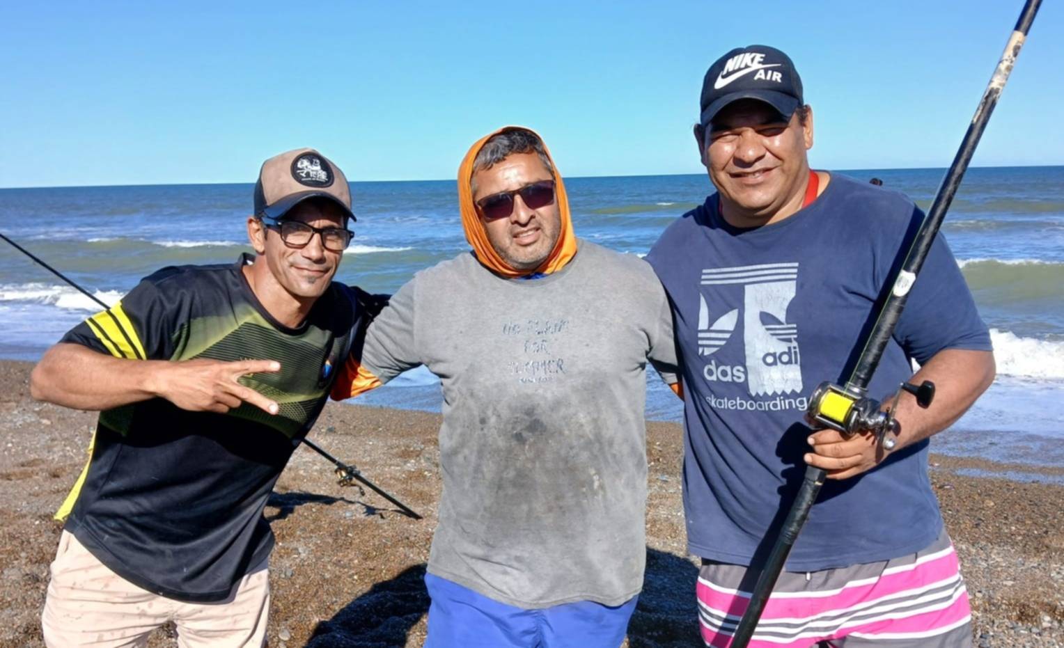 Allí, mientras sacábamos fotos y hablábamos con los pescadores, nos enteramos de la salida de un chucho o raya de importantes dimensiones, estimando su peso en más de 5 kilos. Pero lamentablemente cortó tanza y se fue, pero no muy lejos porque se enganchó en el equipo del siguiente pescador; lo sacaron, pero no tuvo validez porque salió enganchado de otra línea.