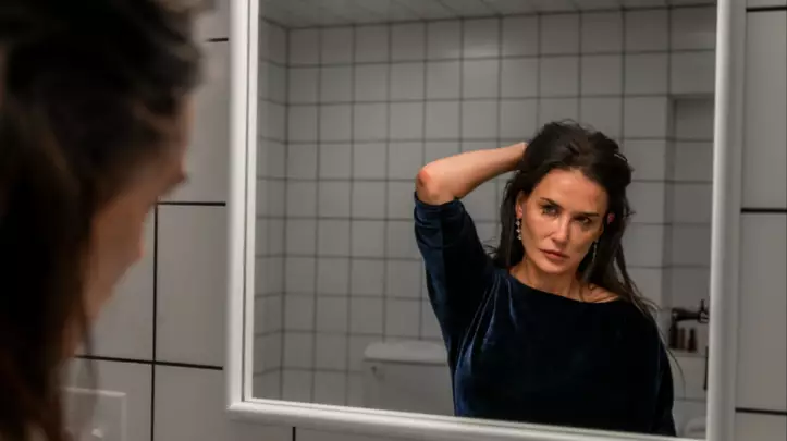 La actriz Demi Moore interpreta en "La Sustancia" a Elisabeth Sparkle, una exestrella de cine que ya pasó su mejor momento y es despedida repentinamente de su programa de fitness por el repulsivo director del estudio, Harvey, interpretado por Dennis Quaid. Frente a ésto la mujer decide comenzar a consumir un suero del mercado negro, creado para tener una versión mucho más joven de si misma. Pero los efectos secundarios son realmente inesperados.