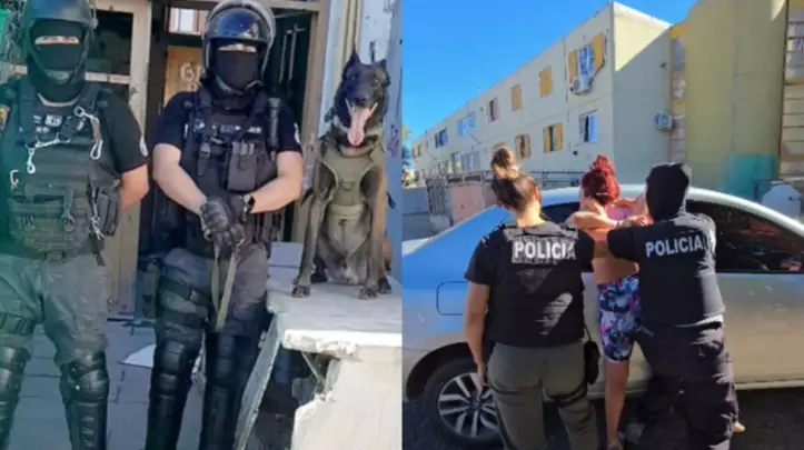 El operativo contó con la colaboración del Área Grupos Especiales, el Grupo Especial de Operaciones Policiales, la División Canes Trelew, la División Policía Científica y la Comisaría Seccional Tercera.