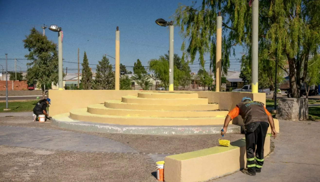 El Municipio de Rawson ejecuta un plan integral de mantenimiento de plazas y espacios verdes, que contempla pintura, refacciones y parquización, con el objetivo de ofrecer espacios públicos accesibles, seguros y funcionales para todos los vecinos.