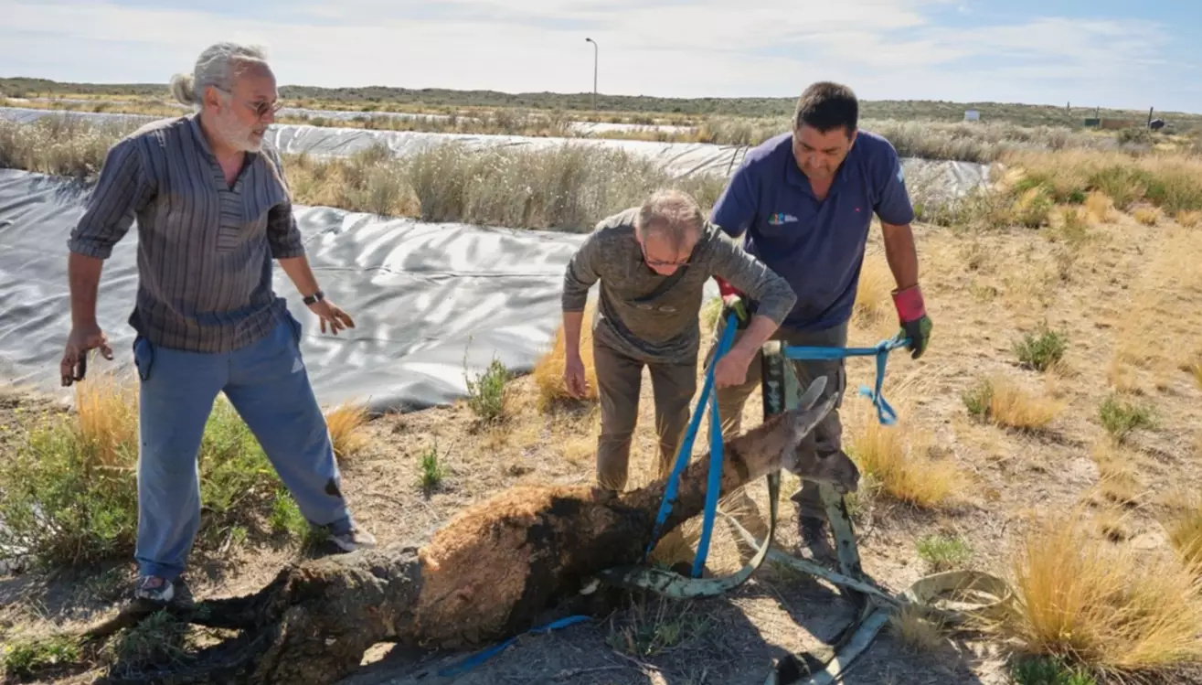 Un guanaco fue rescatado este domingo luego de caer en uno de los piletones del sistema de cloacas de Puerto Piramides, en un operativo que permitió que el animal regresara a su entorno natural sin sufrir heridas.