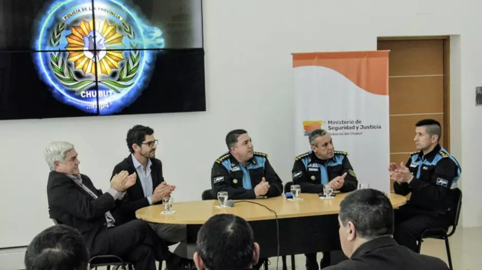El acto se realizó en la Jefatura de Policía en la ciudad capital y con las presencias del subsecretario de Seguridad, Claudio Fernández; el Procurador General de la Provincia, Jorge Miquelarena; el fiscal jefe de Puerto Madryn, Alex Williams; el director de Seguridad del Banco del Chubut, Marcelo Gauna; directores de la Plana Mayor y jefes de área de la fuerza. También estuvieron el subsecretario de Prevención y Protección Ciudadana de la Municipalidad de Puerto Madryn, Luis Báez, y el coordinador de Tránsito y Transporte Municipal de esa ciudad, Néstor Siri.