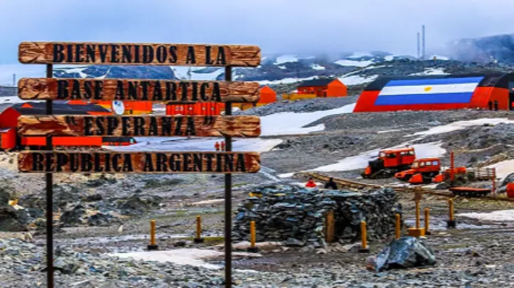 - Base Esperanza en Bahía Esperanza, extremo norte de la Península Antártica alberga una población civil permanente, incluyendo familias y niños. Se realizan estudios sobre biología, geología y meteorología fundada en 1952.