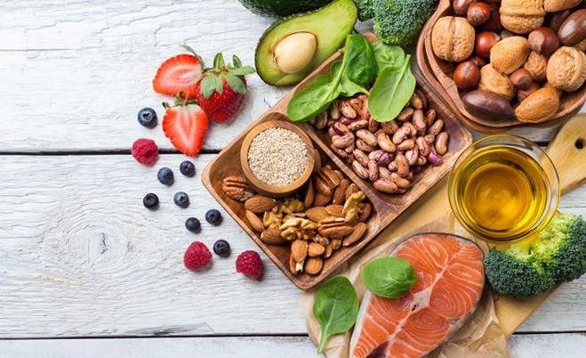 - Menos del 30% de la ingesta calórica diaria procedente de grasas (1, 2, 3). Las grasas no saturadas (presentes en pescados, aguacates, frutos secos y en los aceites de girasol, soja, canola y oliva) son preferibles a las grasas saturadas (presentes en la carne grasa, la mantequilla, el aceite de palma y de coco, la nata, el queso, la mantequilla clarificada y la manteca de cerdo), y las grasas trans de todos los tipos, en particular las producidas industrialmente (presentes en pizzas congeladas, tartas, galletas, pasteles, obleas, aceites de cocina y pastas untables), y grasas trans de rumiantes (presentes en la carne y los productos lácteos de rumiantes tales como vacas, ovejas, cabras y camellos). Se sugirió reducir la ingesta de grasas saturadas a menos del 10% de la ingesta total de calorías, y la de grasas trans a menos del 1% (5). En particular, las grasas trans producidas industrialmente no forman parte de una dieta saludable y se deberían evitar (4,6).