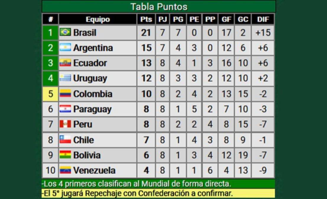- Los 4 primeros clasifican al Mundial de forma directa.
