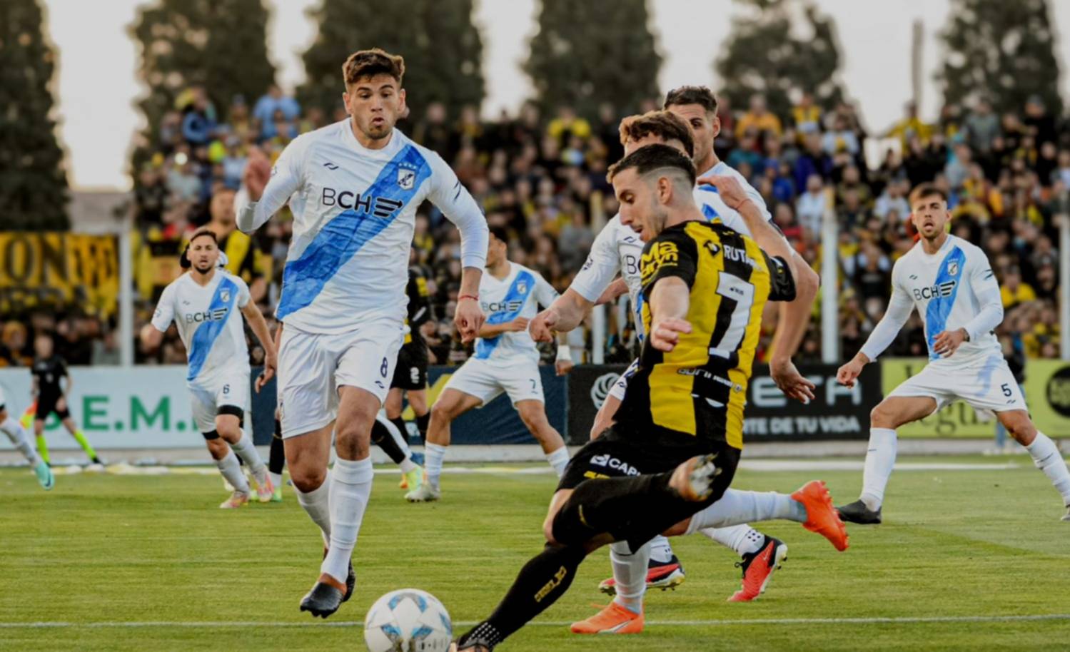 En el complemento, el Aurinegro llenó de centros al área de la Banda, hasta alcanzar el tanto de la victoria, que llegó mediante un córner y con la aparición de Facundo Giacopuzzi, sobre los 84 minutos, luego de una demora por los fuegos artificiales.