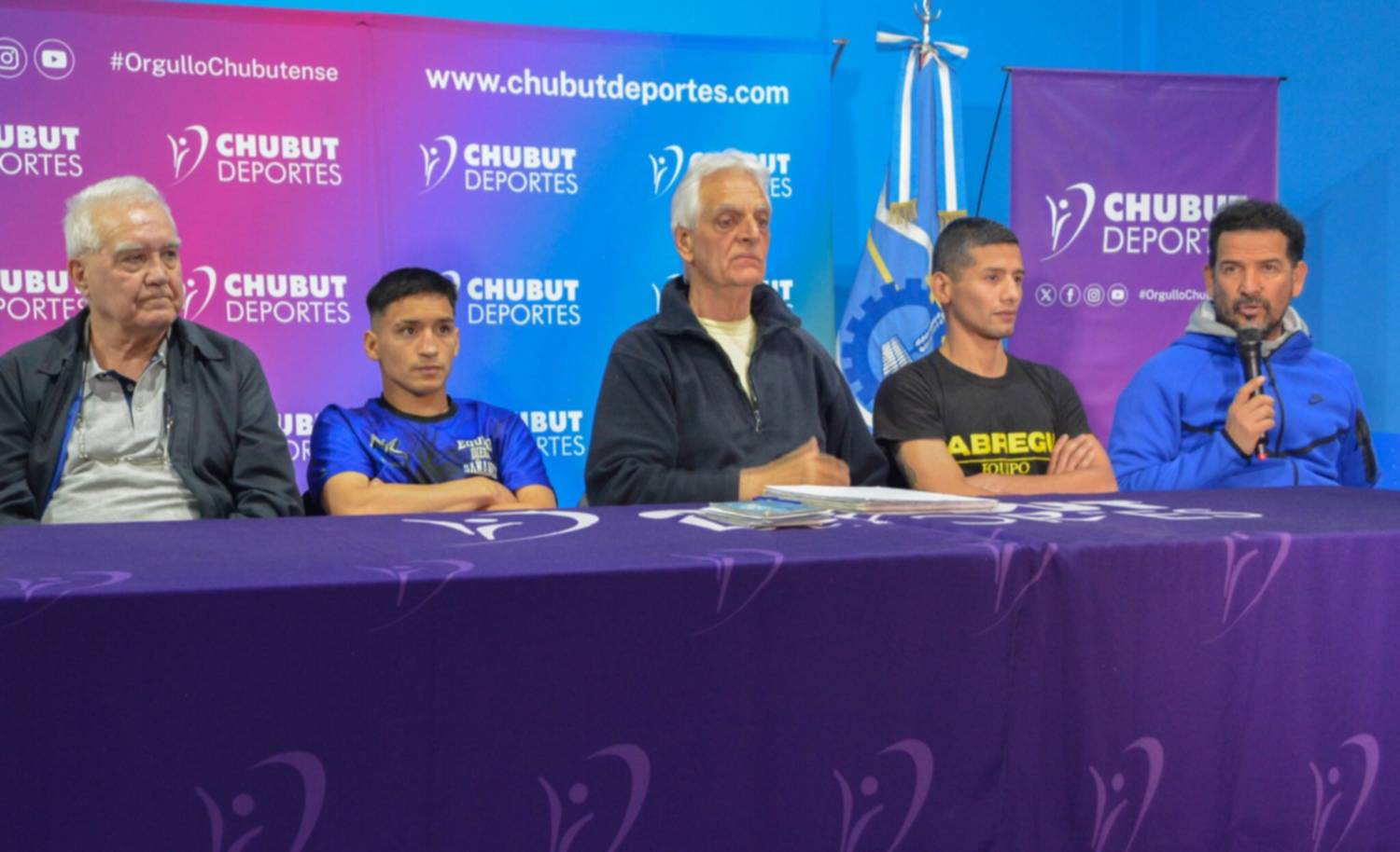 De la conferencia participaron por Chubut Deportes el gerente de Legales, Federico Landau, el subgerente de Planeamiento Deportivo, Ruperto Ruíz, el tesorero de la Federación Chubutense de Box, Oscar Sandín, el presidente de la Comisión Municipal de Boxeo, Segundo Mansilla.