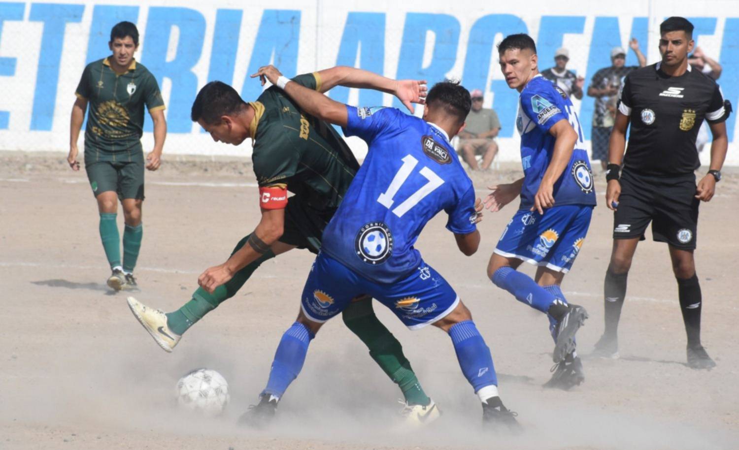 El partido entre Roca y Dolavon, muy disputado en todos los sectores de la cancha.