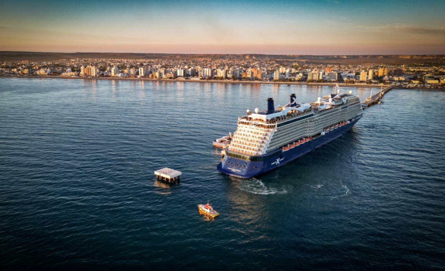 En su quinta visita al Golfo Nuevo, esta mañana amarró al Muelle Comandante Luis Piedra Buena el crucero más grande de la temporada, con 317 metros de eslora, el Celebrity Equinox.