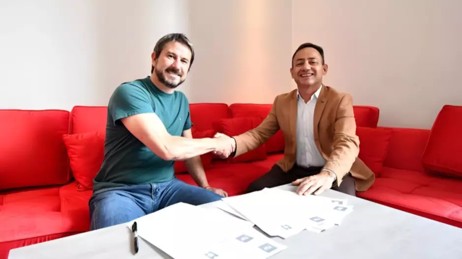 El intendente Gerardo Merino selló el convenio con el municipio mendocino, representado en esta oportunidad por su director de Turismo, Felipe Rinaldo.