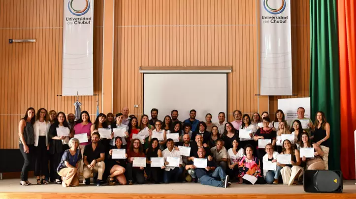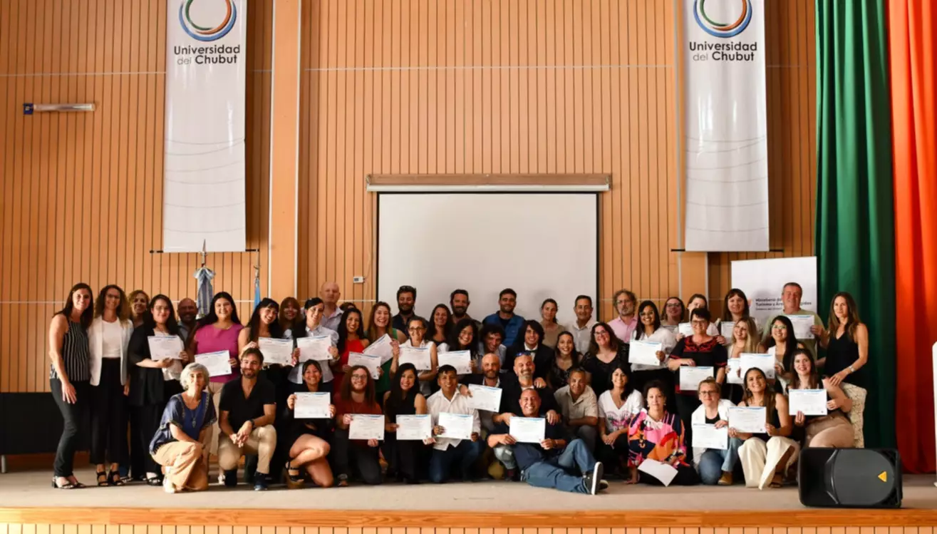 Concluida la capacitación, que comprendió la realización de instancias prácticas en territorio, un total de 46 egresados recibieron sus respectivos diplomas en un acto organizado en forma conjunta por la Universidad del Chubut y el Ministerio de Turismo y Áreas Protegidas de la provincia.